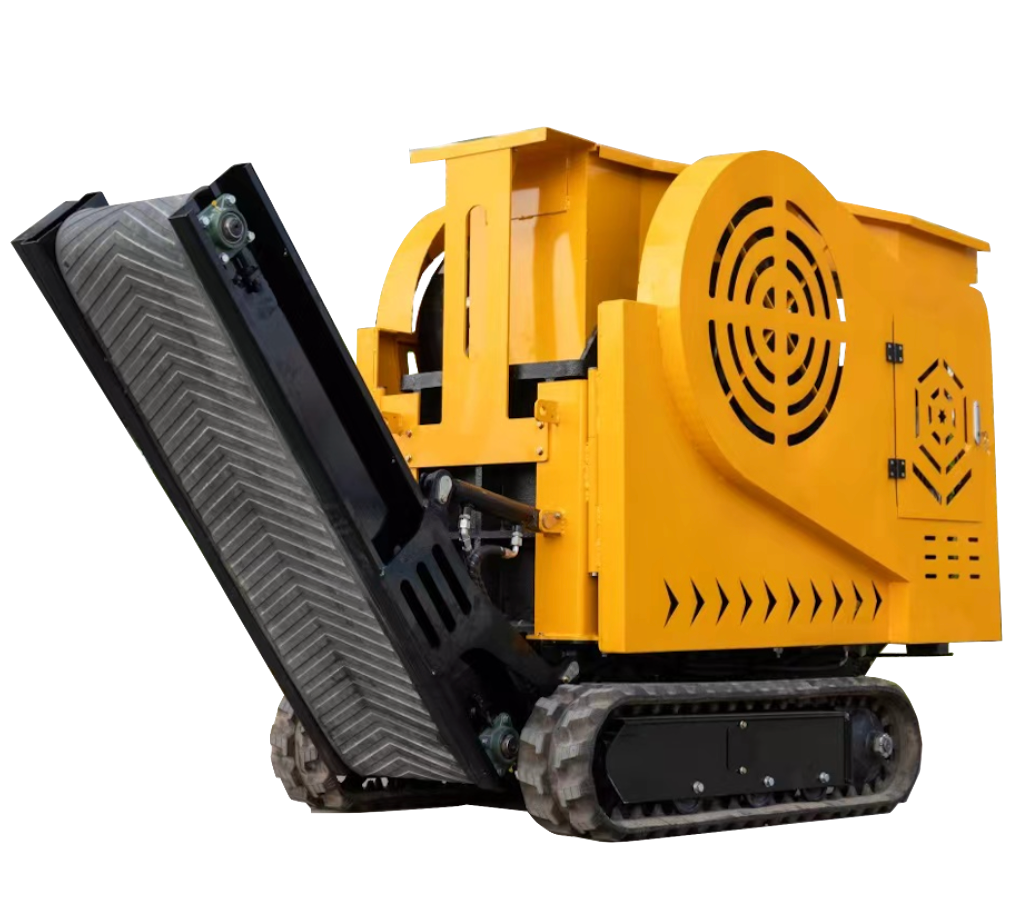 2. Conveyor belt device lifting and lowering using oil cylinder control, discharge clearance from the ground can be controlled